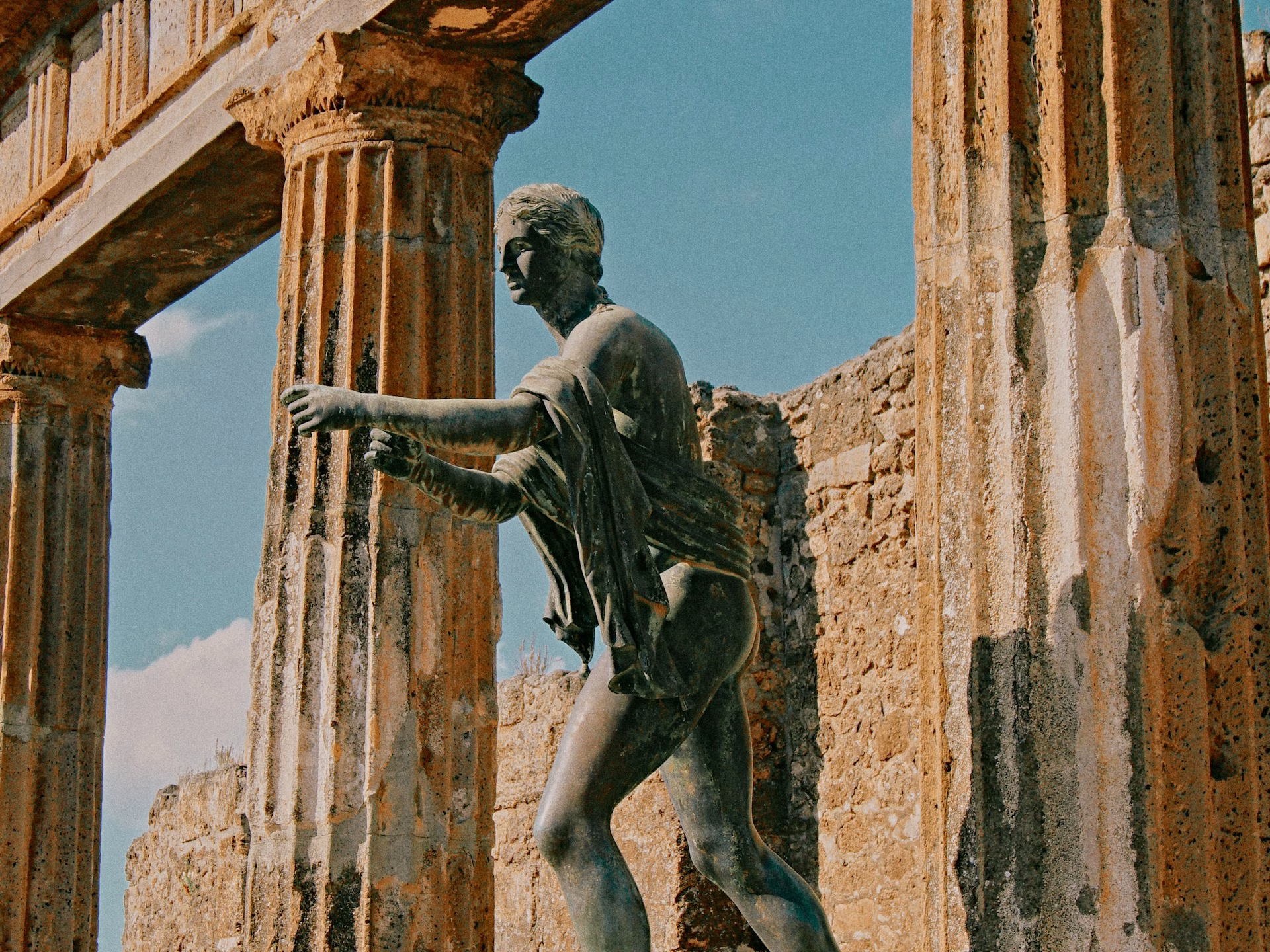 Eurybatus’ eyes come into focus. Sunlight filters through the open space and trees, casting long, expectant shadows across the sandy ground. We nod to each other. His powerful, nude form rises to meet his opponent. The courtyard stirs to life as Eurybatus steps into the circle to face a Thessalian. The sharp slap of bodies meeting echoes against the mountainside. This familiar sound warms my heart and a soft smile arcs my lips. The air is thick with sweat, dust, and the lingering scent of earthy olive oil.